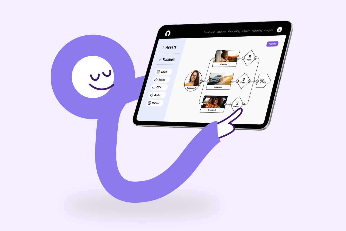 illumin can serve the purpose of a programmatic advertising platform, but it can also do so much more. illumin’s platform easily lets you conduct your entire journey marketing campaign from planning to execution on a single, connected canvas.